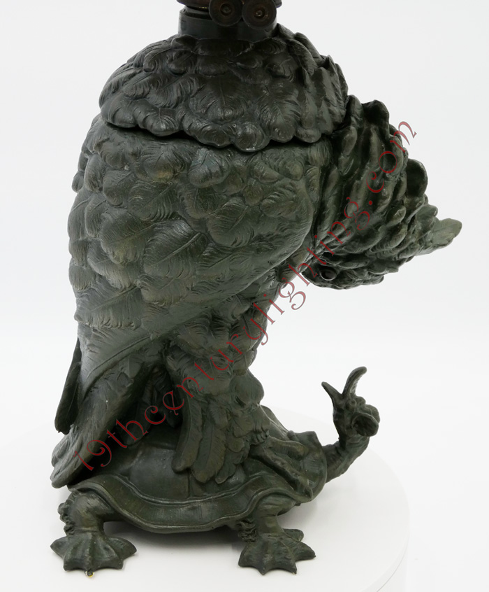Cockatoo with original verdigris patina and Original jeweled open-shade.