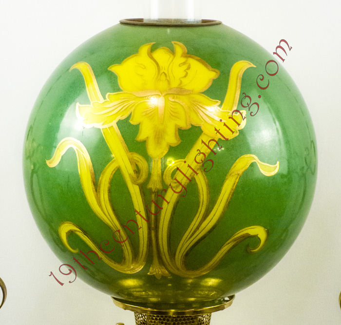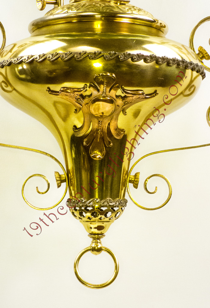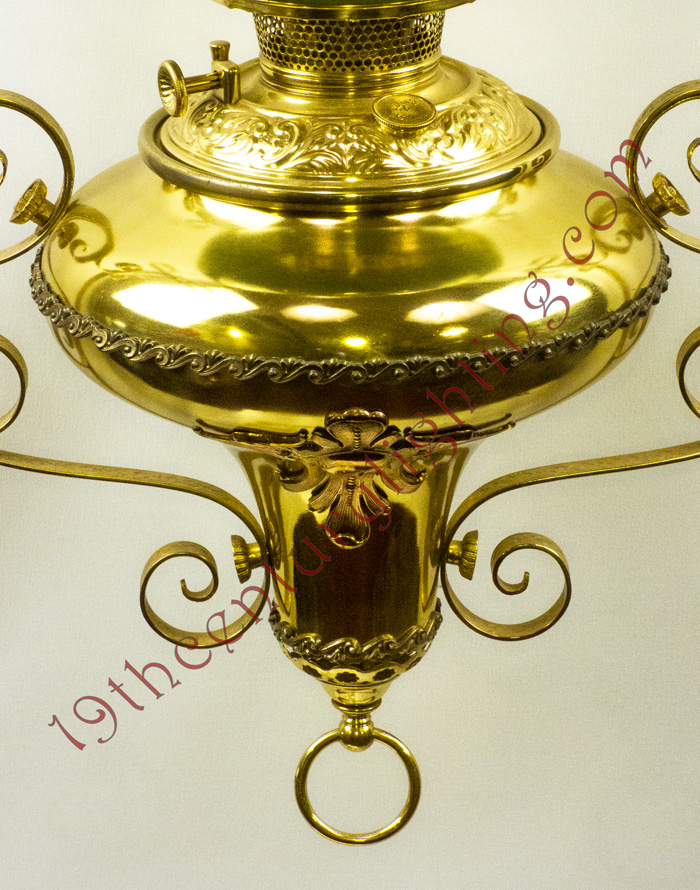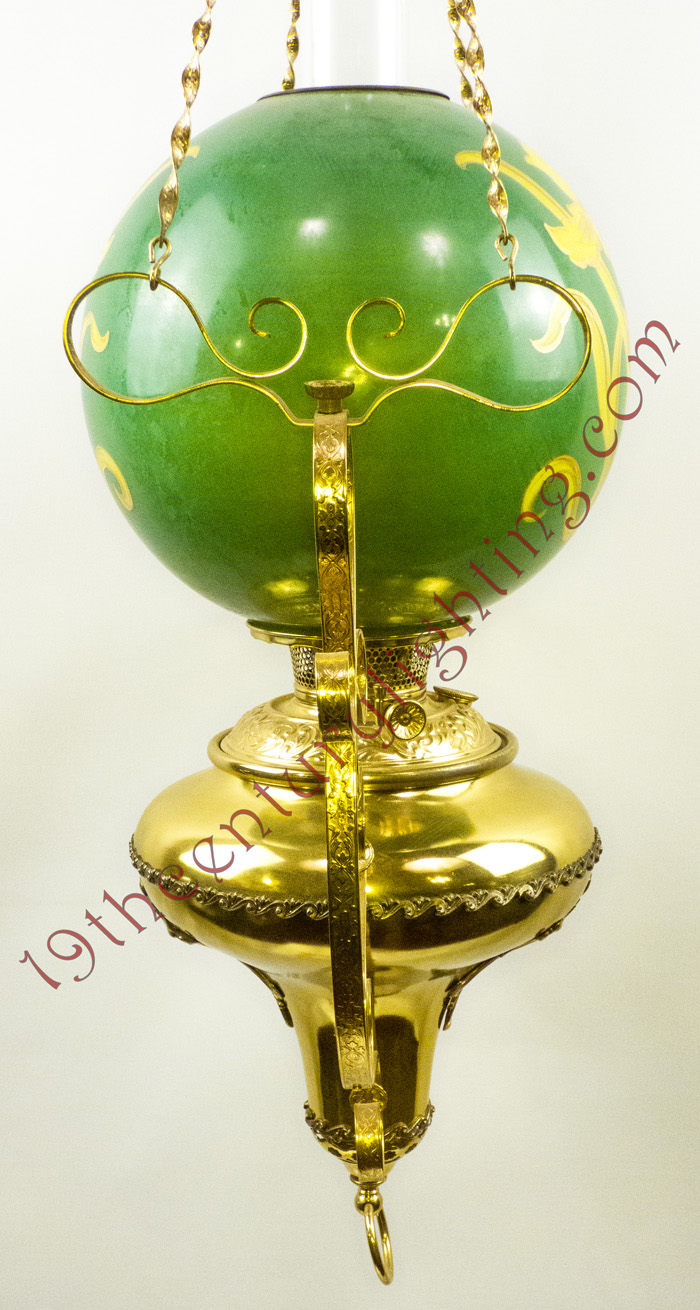 We strive to do our best at attributing the correct manufacturer with each hanging lamp but that is not always the case with some of the rarer lamps and more obscure companies that produced some of these lamps. Most hanging lamps are attributed to a manufacturer due to a component being identified as produced by a particular manufacturer. Very rarely do any of the original trade catalogs surface to unequivocally tie a lamp to a particular company.