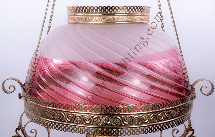 Rare Miller Hanging Lamp w/ Raspberry vine frame and Rubina Swirl Shade