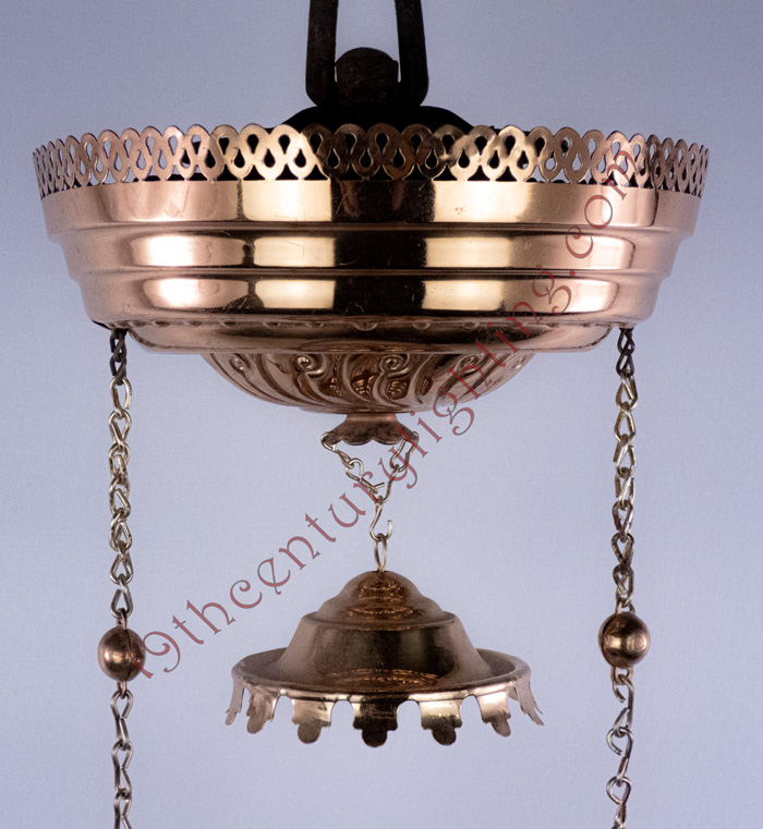 We strive to do our best at attributing the correct manufacturer with each hanging lamp but that is not always the case with some of the rarer lamps and more obscure companies that produced some of these lamps. Most hanging lamps are attributed to a manufacturer due to a component being identified as produced by a particular manufacturer. Very rarely do any of the original trade catalogs surface to unequivocally tie a lamp to a particular company.