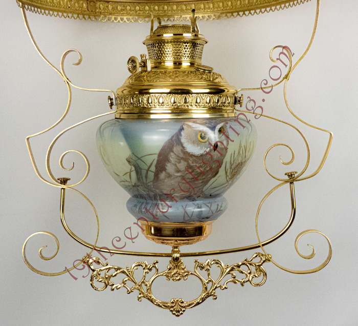We strive to do our best at attributing the correct manufacturer with each hanging lamp but that is not always the case with some of the rarer lamps and more obscure companies that produced some of these lamps. Most hanging lamps are attributed to a manufacturer due to a component being identified as produced by a particular manufacturer. Very rarely do any of the original trade catalogs surface to unequivocally tie a lamp to a particular company.