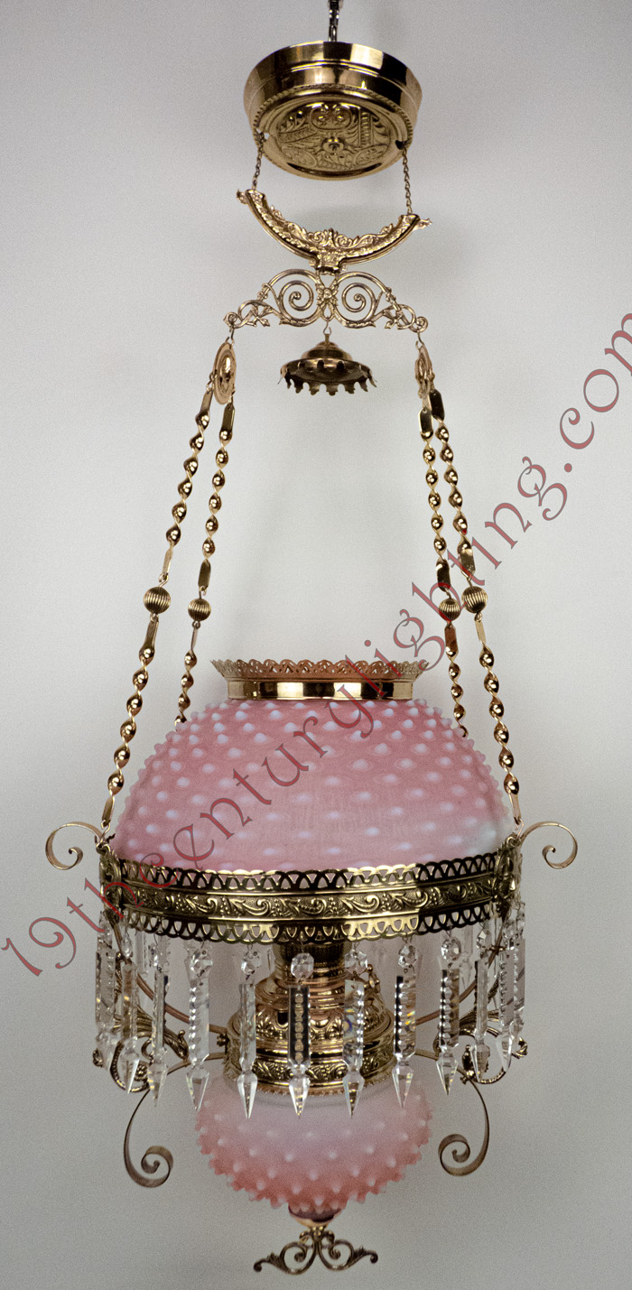 We strive to do our best at attributing the correct manufacturer with each hanging lamp but that is not always the case with some of the rarer lamps and more obscure companies that produced some of these lamps. Most hanging lamps are attributed to a manufacturer due to a component being identified as produced by a particular manufacturer. Very rarely do any of the original trade catalogs surface to unequivocally tie a lamp to a particular company.