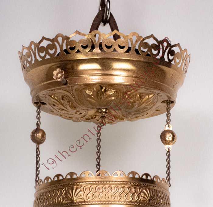We strive to do our best at attributing the correct manufacturer with each hanging lamp but that is not always the case with some of the rarer lamps and more obscure companies that produced some of these lamps. Most hanging lamps are attributed to a manufacturer due to a component being identified as produced by a particular manufacturer. Very rarely do any of the original trade catalogs surface to unequivocally tie a lamp to a particular company.