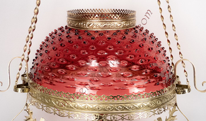 Extremely Rare Ansonia Hanging Lamp With Matching Cranberry Hobnail Shade & Font