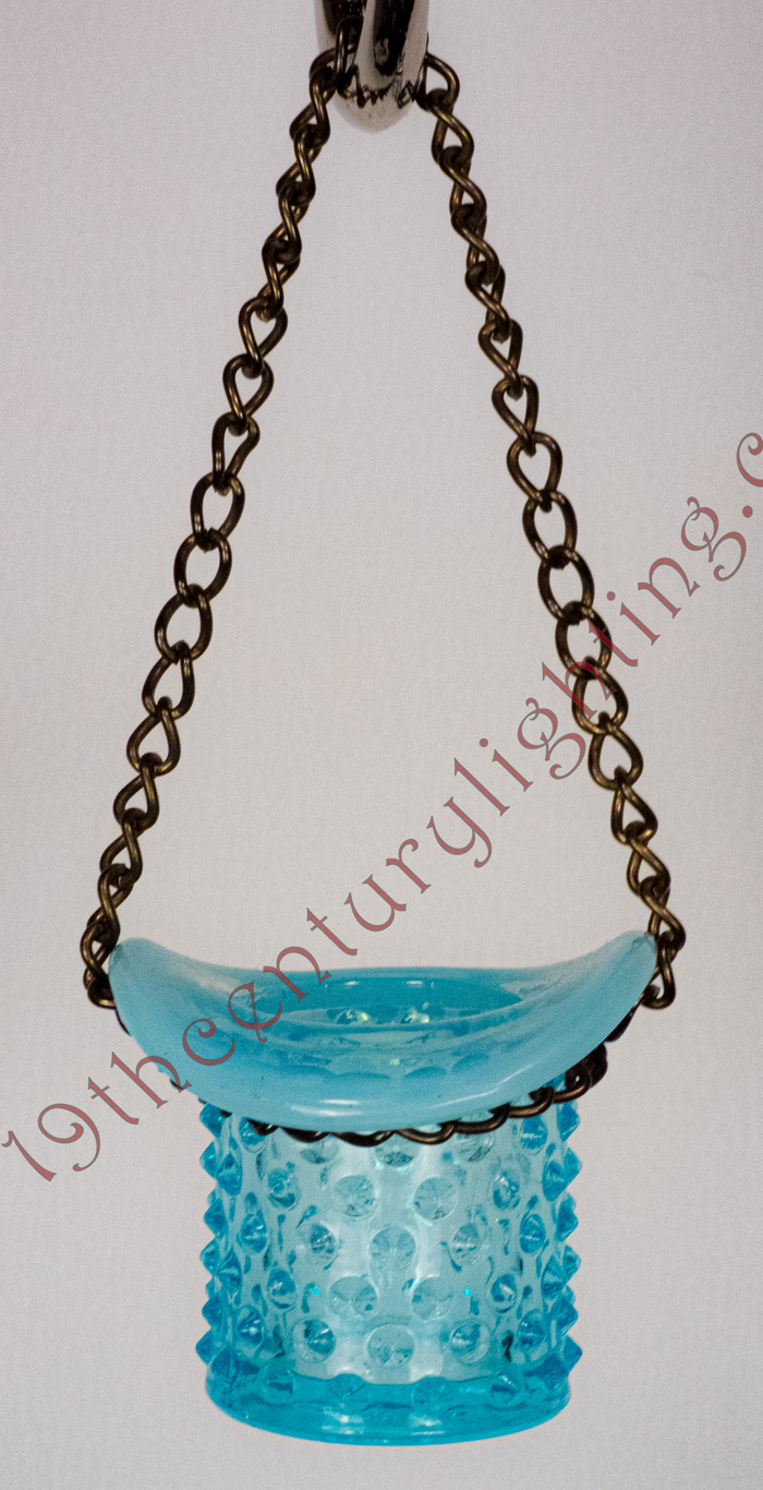 Burnt match holders came in a plethora of styles, colors and shapes. They came in versions either to sit on a table top and/or hang from a hanging lamp as a place to put used matches after lighting the lamp.
