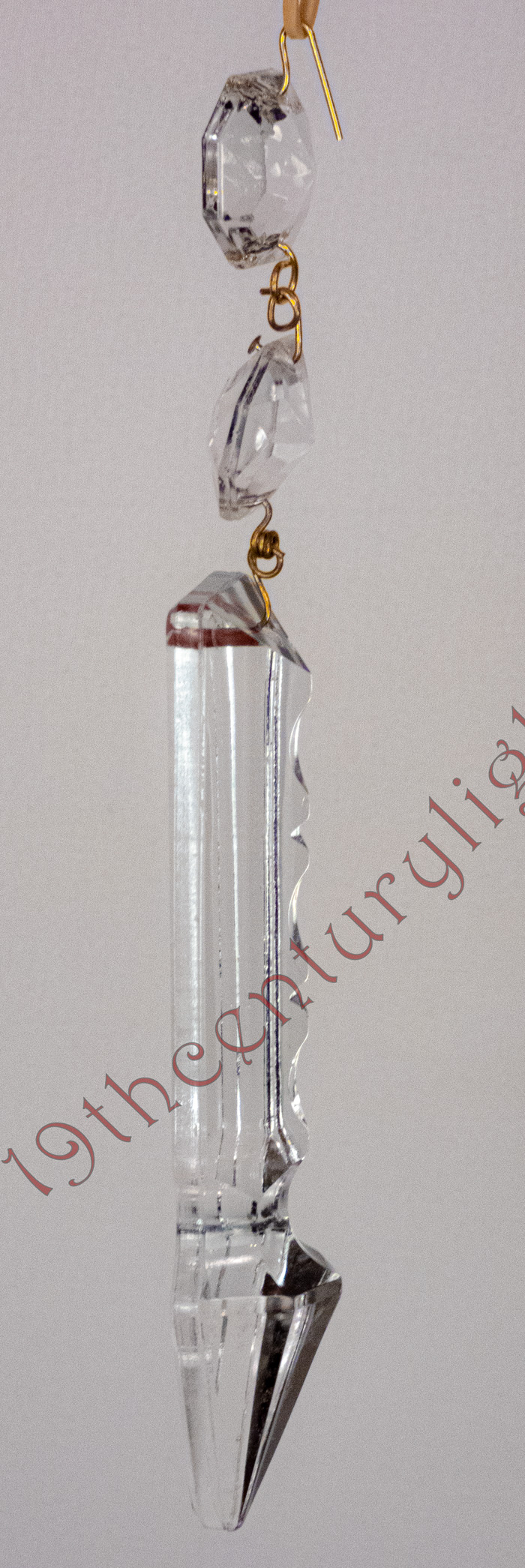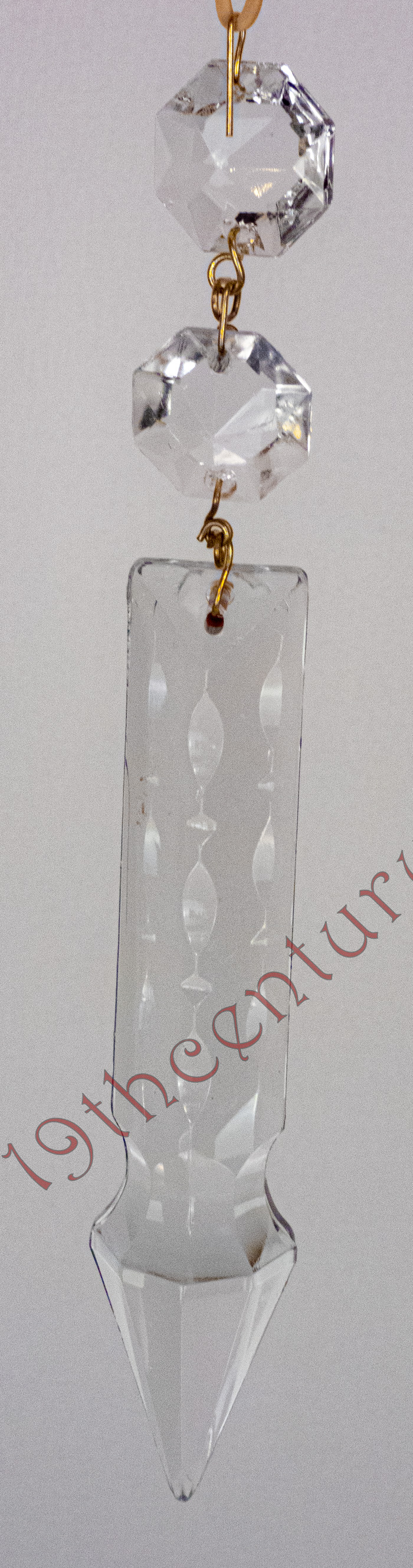 Antique spear point prisms are exceptionally rare and come in several different styles. They may have multiple or singular Bobisch (upper crystals) and may or may not have cuts in the spear. They are considered "superior" to standard prisms in the way they refract light and a much more vibrant gemming effect. All old prisms were produced by hand almost exclusively in Czechoslovakia. We only sell Spear Point Prisms as an upgrade option for hanging lamps. Contact us for availability.