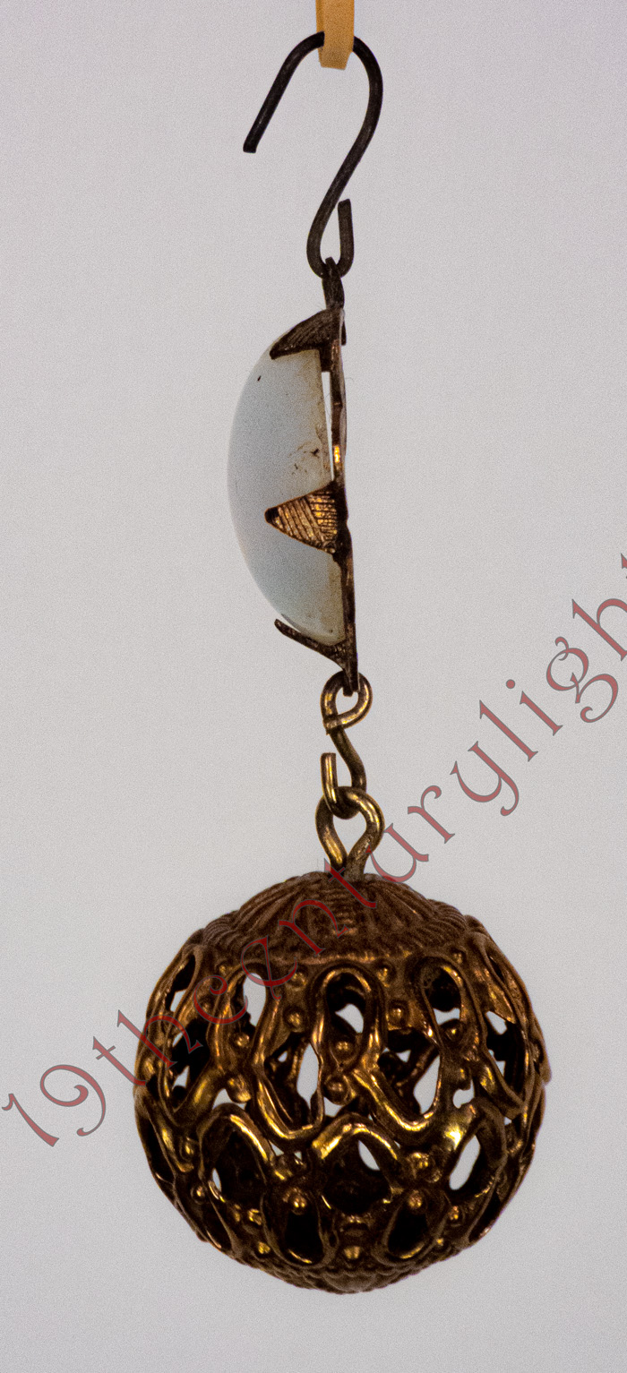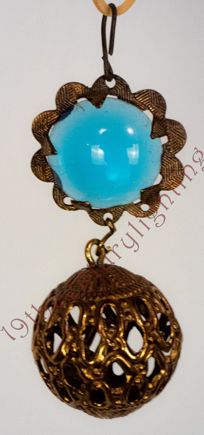 These exceptionally rare Ansonia jeweled prisms with brass balls are so rare that they are usually a once-in-a-lifetime find. They come in various jewel colors but are so rare that one has to just take what they can get when they are available. We exclusively sell any of these prisms we have with high-end hanging lamps. Contact us for availability of the prisms and hanging lamps that we sell them with.