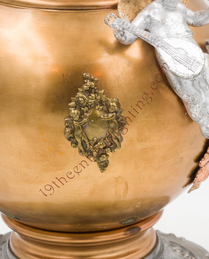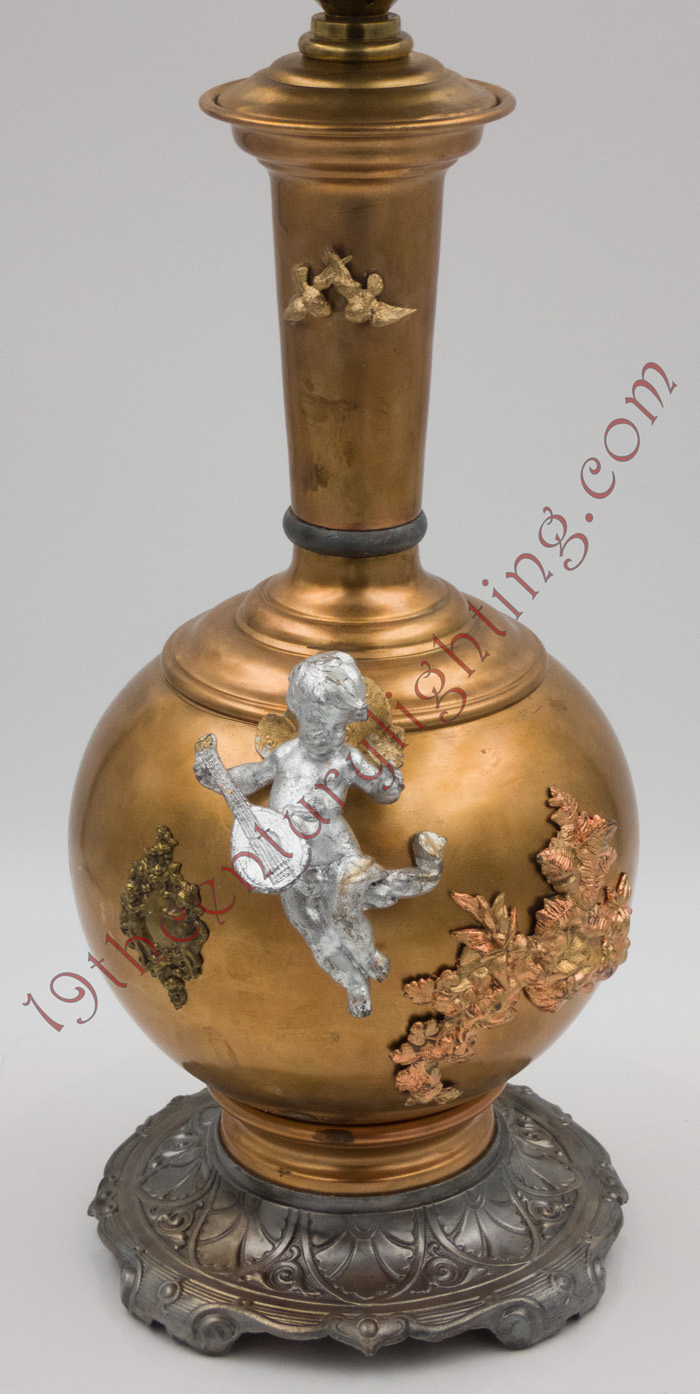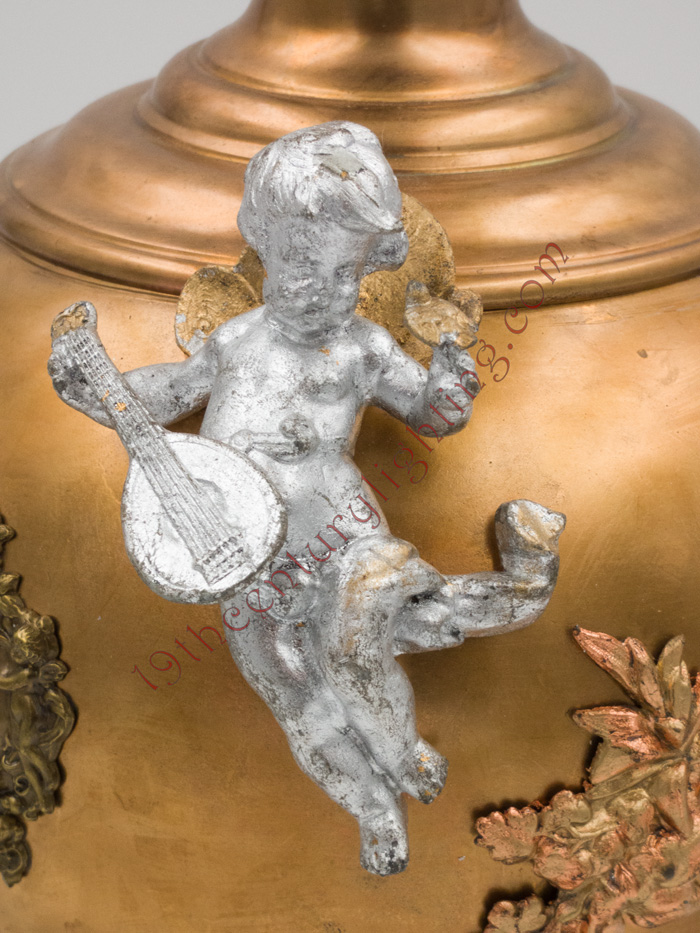 Unusual Cherub Playing a Lyre Banquet Lamp