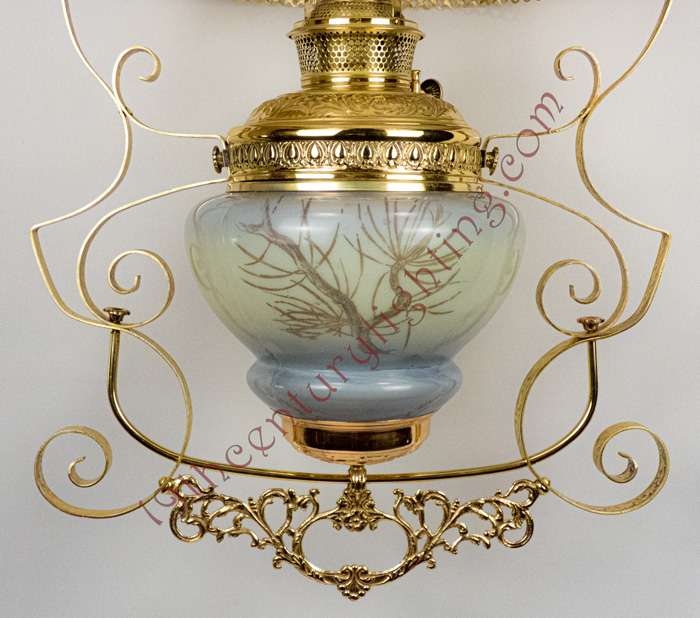 We strive to do our best at attributing the correct manufacturer with each hanging lamp but that is not always the case with some of the rarer lamps and more obscure companies that produced some of these lamps. Most hanging lamps are attributed to a manufacturer due to a component being identified as produced by a particular manufacturer. Very rarely do any of the original trade catalogs surface to unequivocally tie a lamp to a particular company.