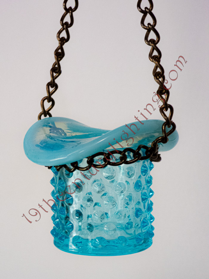 Burnt match holders came in a plethora of styles, colors and shapes. They came in versions either to sit on a table top and/or hang from a hanging lamp as a place to put used matches after lighting the lamp.