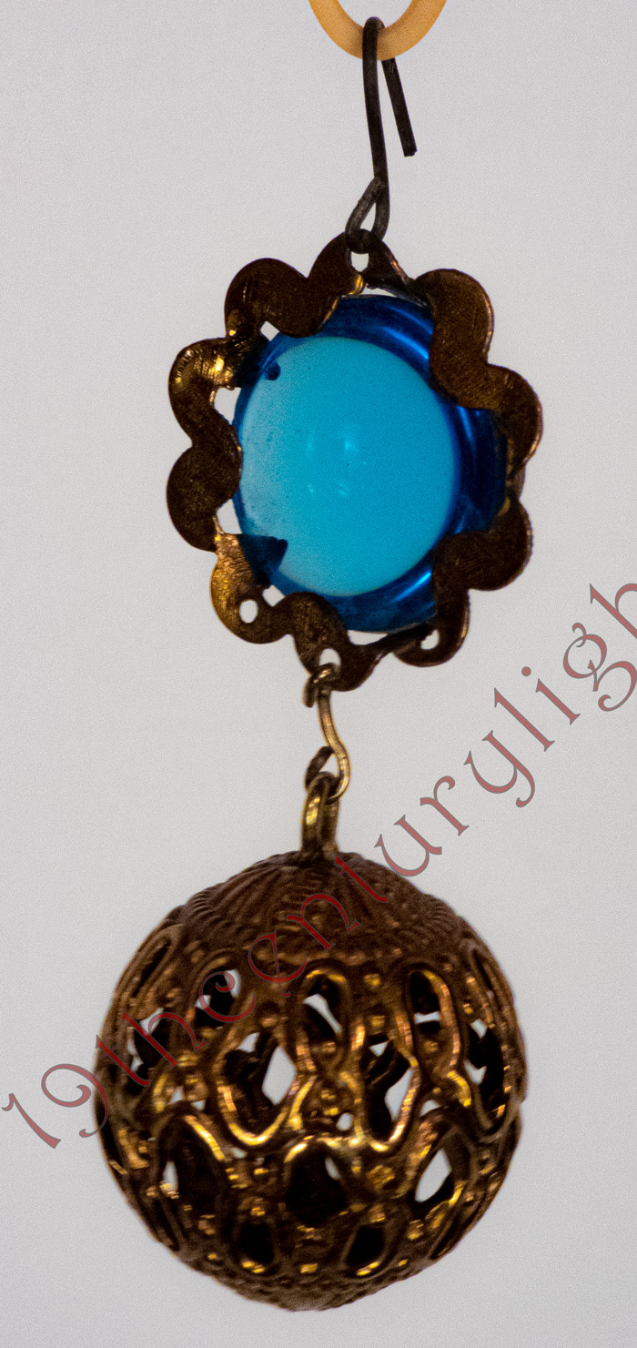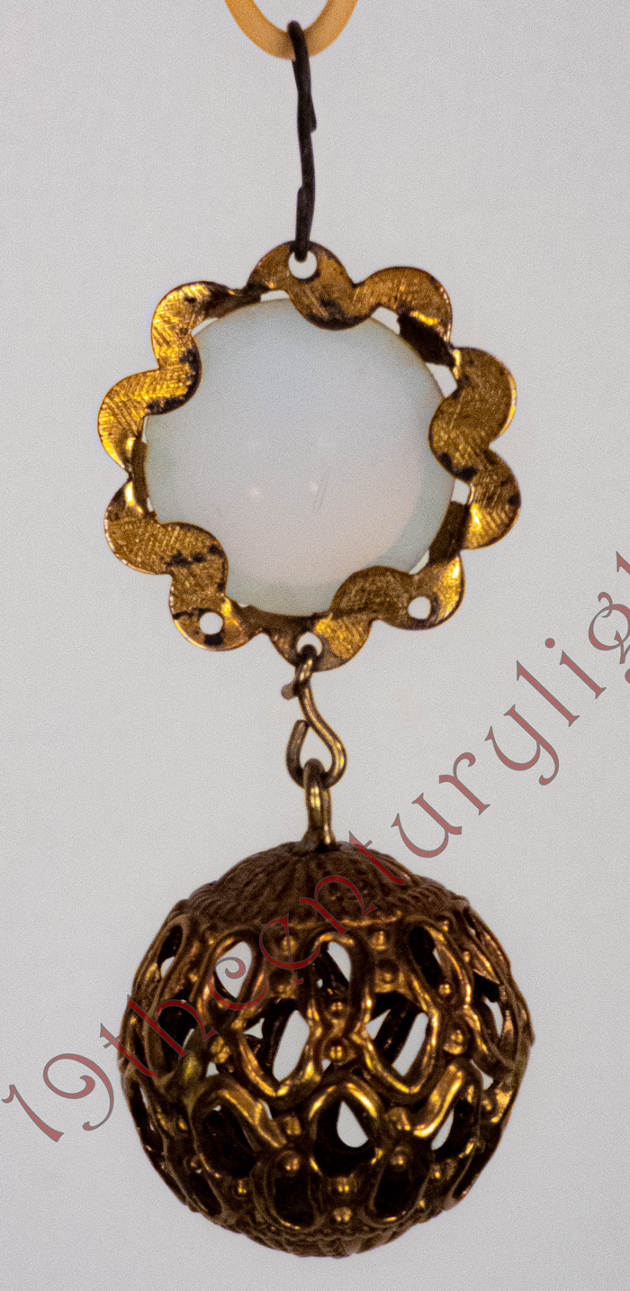 These exceptionally rare Ansonia jeweled prisms with brass balls are so rare that they are usually a once-in-a-lifetime find. They come in various jewel colors but are so rare that one has to just take what they can get when they are available. We exclusively sell any of these prisms we have with high-end hanging lamps. Contact us for availability of the prisms and hanging lamps that we sell them with.