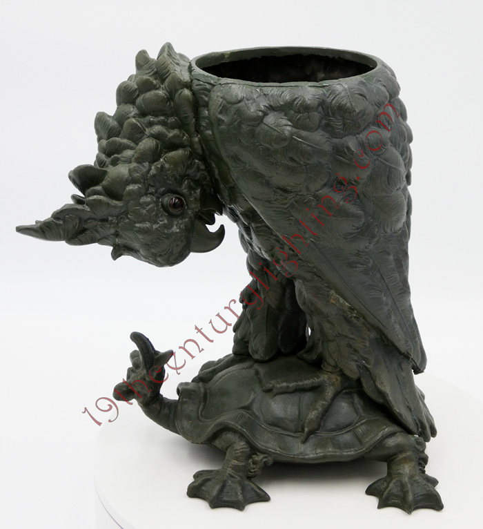 Cockatoo with original verdigris patina and Original jeweled open-shade.
